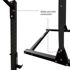 Soporte ideal para una variedad de entrenamientos que incluyen ejercicios de sentadillas, press de banca y dominadas.